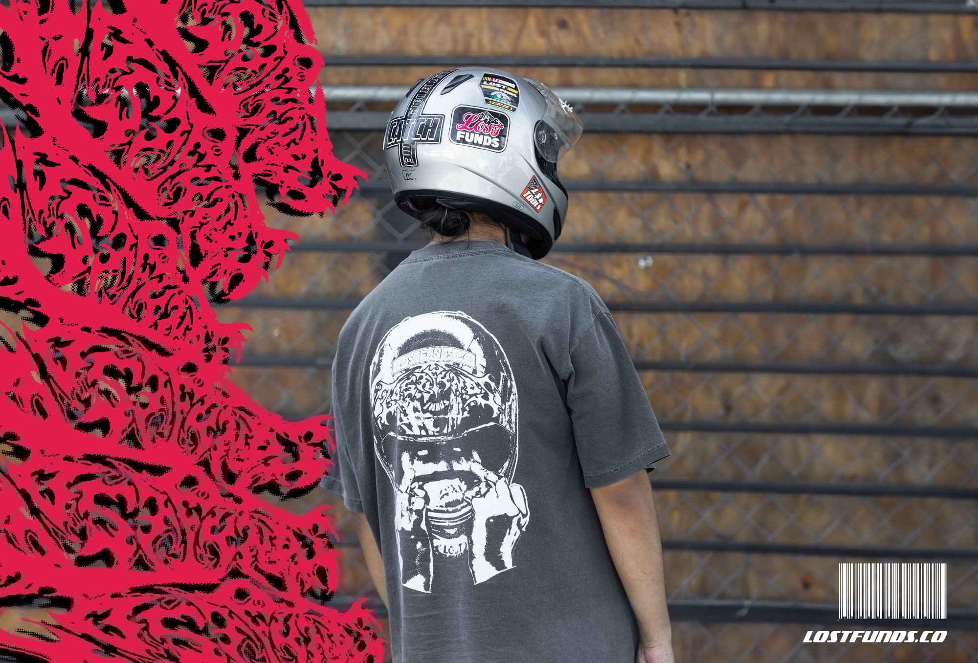 Heavyweight over-dyed grey T-shirt Front chest + Back screen print. *Please allow 1-2 weeks for shipping*